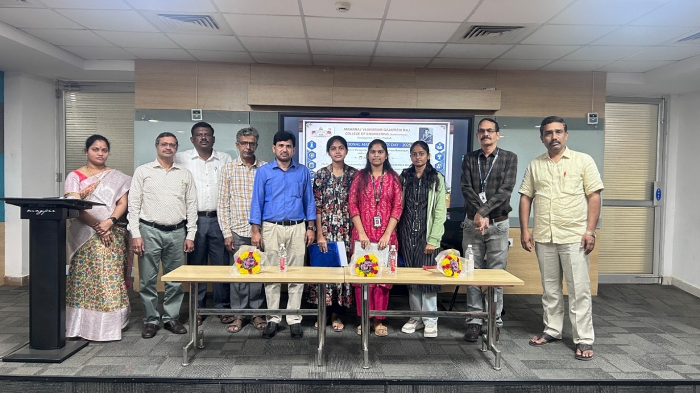 The Mathematics Division of the Department of Science and Humanities, MVGR College of Engineering (Autonomous), celebrated National Mathematics Day – 2025 with great enthusiasm on 22 December 2025, commemorating the birth anniversary of the legendary mathematician Sri Srinivasa Ramanujan. The celebration highlighted the significance of mathematical thinking and its vital role in engineering, innovation, and everyday life.